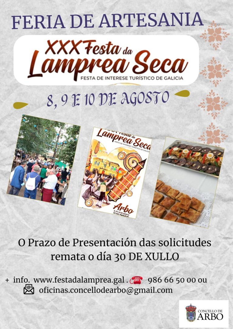 XXX FESTA DA LAMPREA SECA 10 DE AGOSTO (DOMINGO) 12.00h: Pasarúas e Actuación do Grupo de Gaitas da “A.C. Barca de Loimil”, na Carballeira de Turbela.