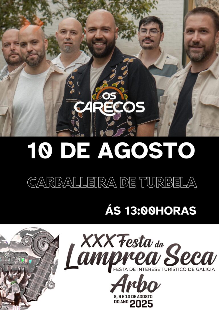XXX FESTA DA LAMPREA SECA 10 DE AGOSTO (DOMINGO) 13.00h: Actuación do Grupo “OS CARECOS”, na Carballeira de Turbela.
