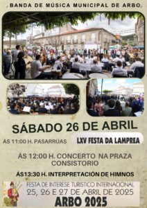 Desde aquel mes de abril de hace 31 año, la Banda de Música de Arbo, NUESTRA BANDA, nos acompaña en los actos centrales de la FESTA DA LAMPREA: