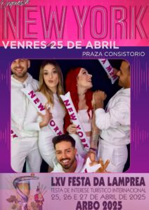 Seguimos con la presentación de la PROGRAMACIÓN de la “LXV FESTA DA LAMPREA”: VENRES 25 DE ABRIL, Orquesta NEW YORK en la Praza Consistorio. Para presentar sú 🅖🅘🅡🅐 𝟮𝟬𝟮𝟱: 𝒰𝓃 𝓅𝒶𝓈𝑜 𝒶𝒹𝑒𝓁𝒶𝓃𝓉𝑒