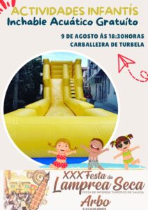 18:30h: ACTIVIDADES INFANTÍS. Inchable Acuático Gratuíto.