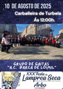 12.00h: Pasarúas e Actuación do Grupo de Gaitas da “A.C. Barca de Loimil”, na Carballeira de Turbela.